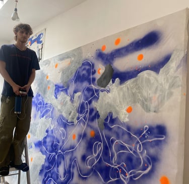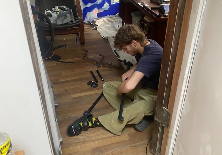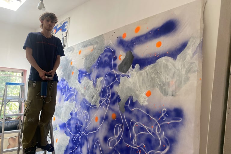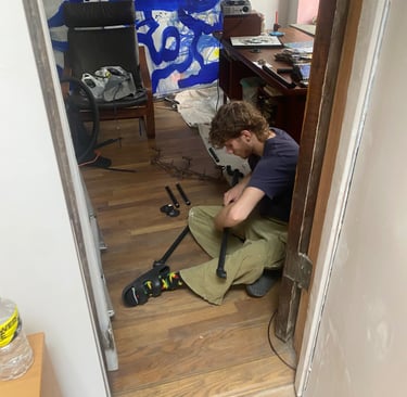 In the summer of 2023, Alex Rojas, an artist of the East Village, asked Django to be her assistant. Alex’s studio in The Bullet Space Gallery is where Django spent most of his summer working with his hands. He built shelving, painted a bunk, spackled the entire studio, stretched canvases, and would gesso canvas's.